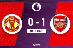 上半场伤停补时1分钟,半场结束,曼联暂0-1阿森纳。